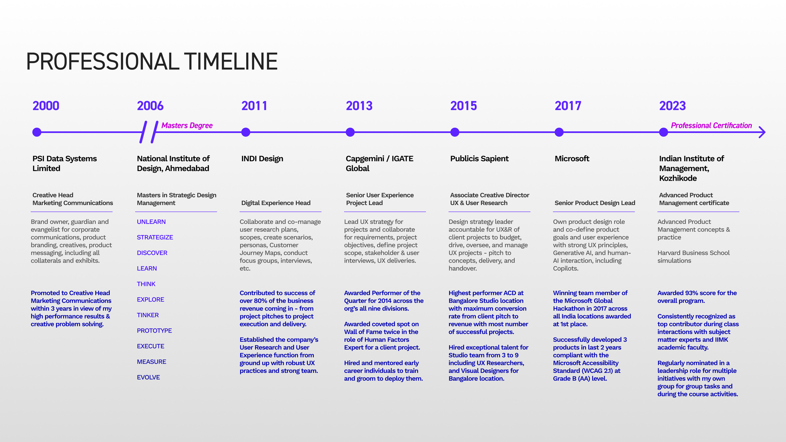 I've had the privilege of leading cross-functional teams at top organizations like Microsoft and Publicis Sapient, driving design strategy, and aligning UX goals with business objectives.